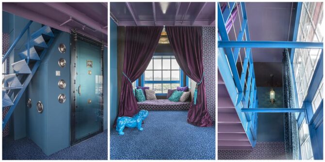 Люкс «Free Spirit», занимающий 36 квадратных метров и два этажа элегантного и стильного дизайна, располагается над рекой Ий, откуда открывается невероятный вид на город. Секретный номер (бывшее машинное отделение) — идеальное гнездо любителей синего и зеленого. Наконец, черно-золотой люкс «Mystique», отделанный кожей, предлагает атмосферу, более подходящую для любителей, которые предпочитают кнуты и цепи.