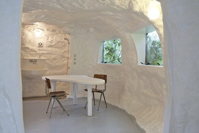 Эстетически это… довольно отвратительно. С внешней стороны толстая кишка, сделанная из дерева, пенополиуретана и полиэстера, армированного стекловолокном. Толстая кишка снаружи выглядит сырой, красной и пульсирующей. Внутри она чистая и белая, в отличии от человеческой. Но это никак не отразилось на его огромной популярности, особенно среди супружеских пар (по неизвестным причинам). Считается, что ежегодно там останавливаются от 200 до 250 человек. Предоставляется завтрак (при условии, что его смогут переварить), а в ободочную кишку входит двуспальная кровать, центральное отопление и душ.