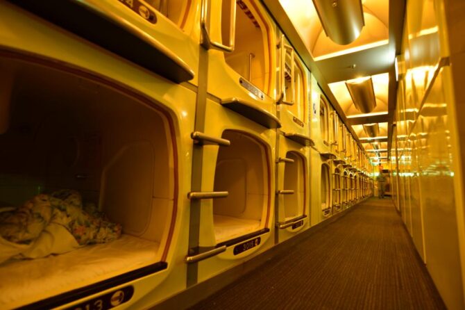 С 1979 года Япония лидирует в капсульных отелях — жилье, в основе которого лежит эффективность и простота. Но несмотря на то, что они утверждают, что предлагают «первоклассный гостиничный опыт», трудно обойти стороной тот факт, что комната по сути напоминает большую стиральную машину. Или, возможно, более точное описание заключается в том, что это все равно что находиться в морге — главное отличие — вы должны отмечаться каждый день в 10 часов утра.