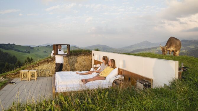 Если Icehotel впечатляет своим дизайном и изобретательностью, то Null Stern Hotel впечатляет тем, что в нем нет ни того, ни другого. Это художественная инсталляция, отель или их комбинация? Гостиничный номер состоит только из кровати и прикроватной тумбы, находящиеся в открытой горной местности. Null Stern находится на высоте 2-х километров над уровнем моря. Полностью уничтожая надежду провести день на пляже. Но есть чем заняться: погулять, поговорить или подождать, пока несчастный дворецкий доставит завтрак в постель (хотя, откровенно говоря, никто об этом не догадывается).