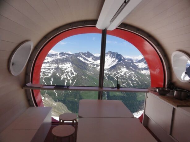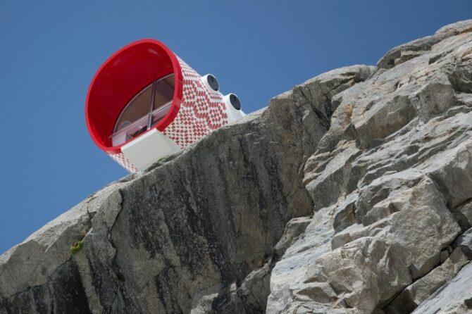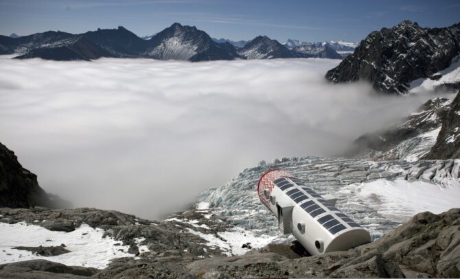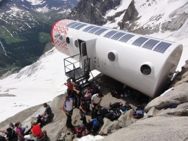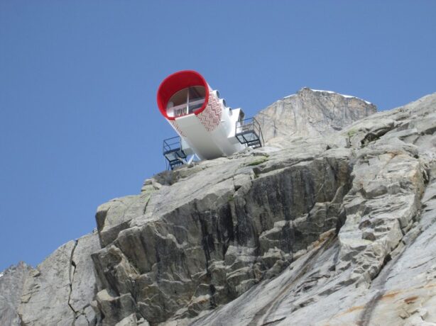 Капсулярный Bivacco Gervasutti (схожий со сценой из драмы 1993 года «Живой») похож на фюзеляж, который врезался очень сильно в горы. Названный в честь знаменитого альпиниста Джусто Джервасутти, он расположен, кажется, небезопасно, на леднике Фребуза в Монблан, на высоте 2835 метров над уровнем моря. И, что примечательно, это не первый жилой комплекс, построенный на этом месте. Bivacco Gervasutti заменил гораздо более спартанскую деревянную постройку, которую построили в 1948 году в память о Джервасутти.