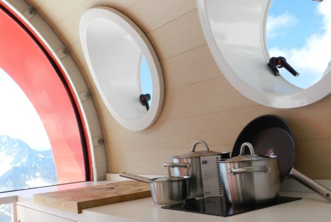 Площадью 30 квадратных метров, эта замечательная конструкция рассчитана на 12 человек и оснащена двумя спальнями, гостиной и обеденной зоной. Несмотря на уют, никто не скажет, что это самый роскошный отель в мире. И, вероятно, можно с уверенностью предположить, что его гостям не нужно соответствующим образом балансировать вес во сне, чтобы капсула случайно не упала в ледниковую пропасть внизу.