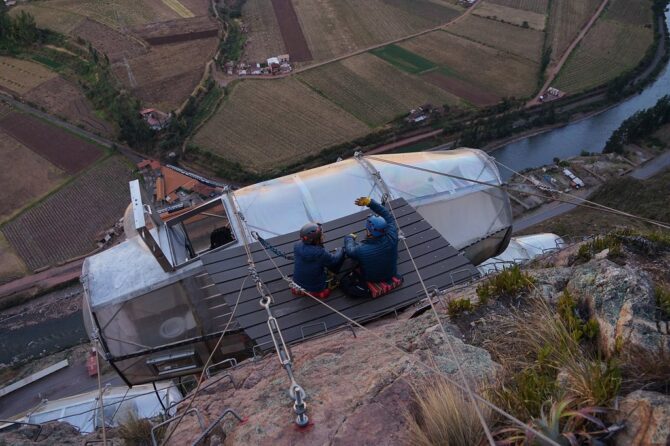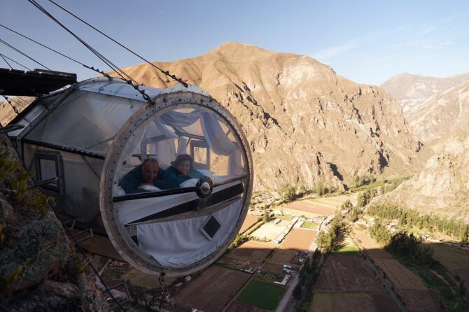 Если вы один из тех людей, которым нравится жить на краю, Skylodge Adventure Suites может быть идеальным выбором для вас. С 2013 года из 3 номеров-люксов отеля открывается потрясающий 360-градусный вид на живописную Священную долину Куско в Перу. Каждый номер выполнен из аэрокосмического алюминия и стойкого к атмосферным воздействиям поликарбоната и имеет длину семь метров, высоту почти два с половиной метра, абсолютно прочен и полностью прозрачен (за исключением скрытой, к счастью, ванной комнаты).