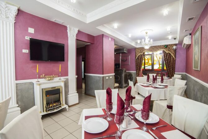 В ресторане на территории подают изысканные блюда европейской кухни, а также готовят особую диетическую пищу и предлагают большой выбор угощений для малышей.