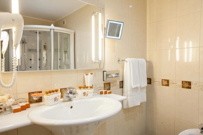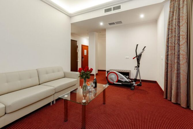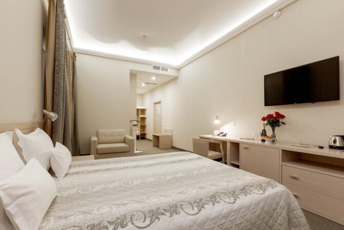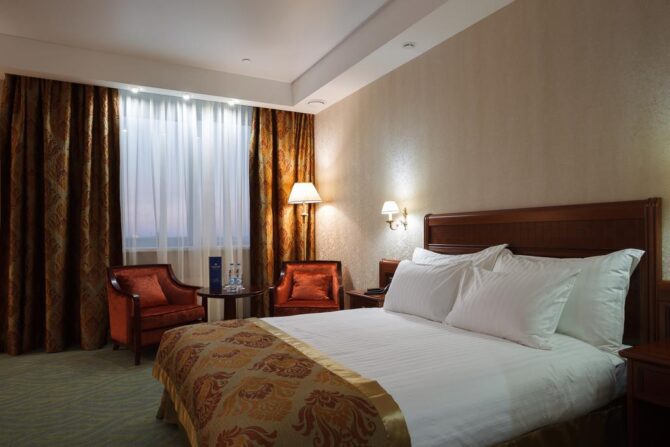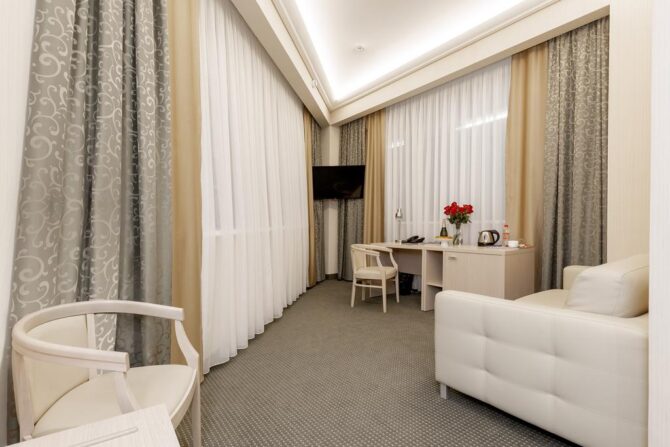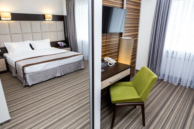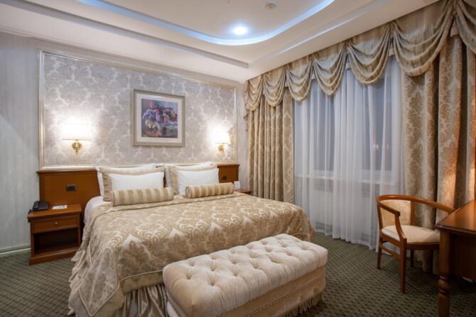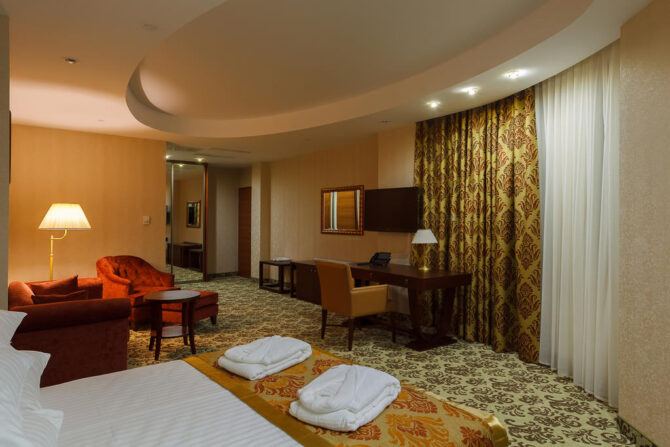 Номер-фонд включает в себя разные варианты размещения: стандарт, делюкс, комфорт, студио, люкс и президентский сьют. Благодаря большой площади в комнатах сможет спокойно поместиться даже большая семья.
