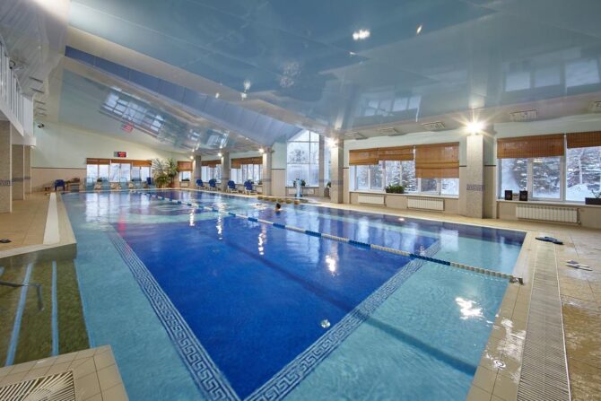 Одним из главных преимуществ комплекса является собственный бассейн на открытом воздухе и песчаный пляж на берегу озера. Персонал предлагает массу возможностей для занятий спортом и предлагает развлечения для детворы.
