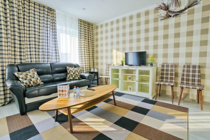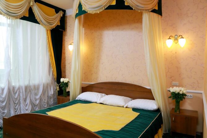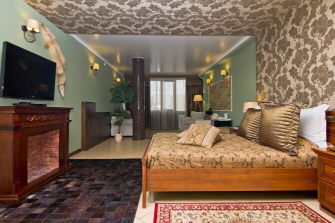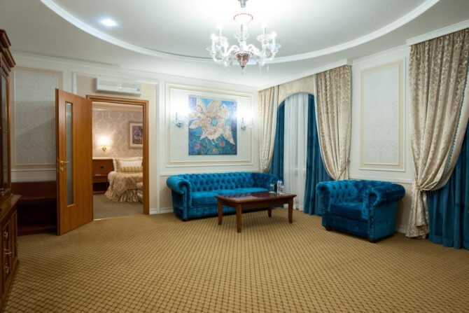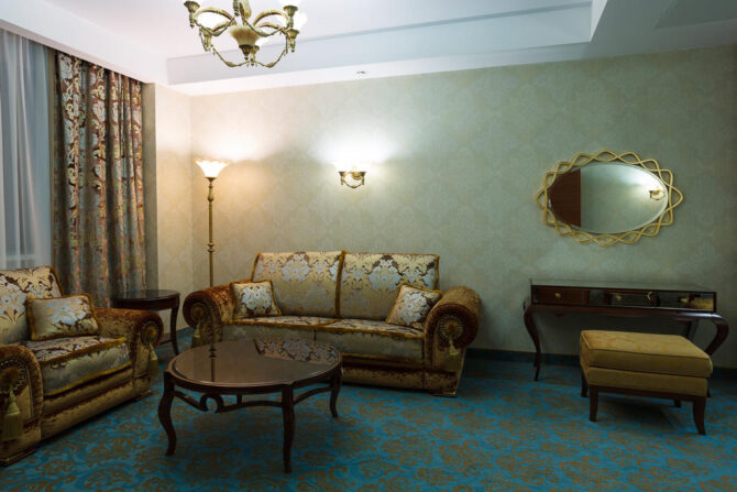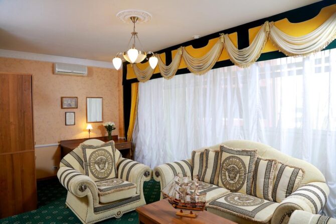 Все детали выполнены в роскошном изысканном стиле. Гости могут забронировать следующие апартаменты: улучшенные, люксовые, двухуровневые.