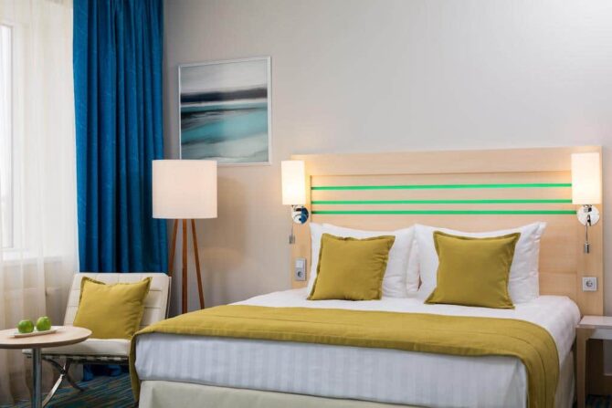 Radisson Blu Челябинск | 17 км до а/п | Standard Улучшенный Люкс Полулюкс Премиум | Гостиный уголок Кофемашина Вентилятор ТВ-каналы | Парная Тренажеры Бассейн СПА-процедуры Выставки Выступления | От 80 Евро, включая ребятишек до 12 лет. | По предварительному запросу. |