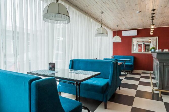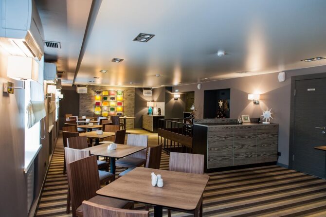 Небольшое по размеру заведение прекрасно подойдет для людей, находящихся в командировке, так как он находится в деловом центре: недалеко основные офисные и бизнес-центры.
