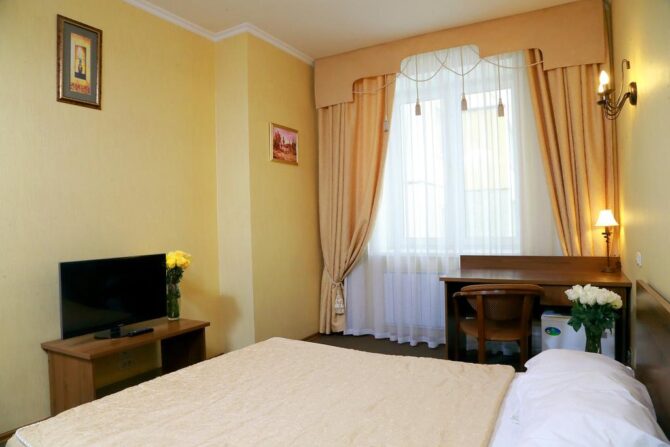 Комплекс «Арбат» располагает отличным номерным фондом – для размещения доступны следующие типы: стандарт, комфорт, бизнес-класс. Из некоторых сьютов открывается красивый вид на панораму.