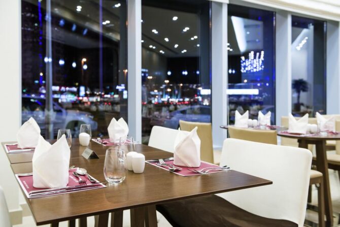 Для гостей работает два ресторана. Al Rihla организует питание по системе «All Inclusive» — по утрам сервируются классические континентальные завтраки, включающие бутерброды, круассаны, разнообразие джемов и меда, сырные и мясные нарезки. Для юных постояльцев – молочные кашки, хлопья с молоком, йогурты.
