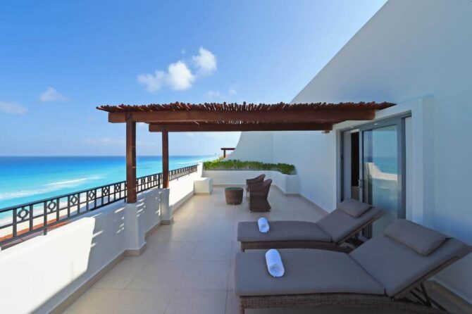 Ocean Front Condo in Hotel Zone | 14 км до а/п | Делюкс Сьют с террасой студио улучшенный | Мини-кухня Плеер Чайник Чистящие средства | Мини-бассейн СПА Бизнес-зона Паркинг | От 190 EUR. Дети до 11 лет – бесплатно | Нет |