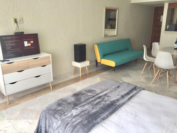 В здании нет своего заведения, но еду можно легко приготовить у себя в студии благодаря мини-кухне со всей необходимой техникой. Попробовать отменные мексиканские угощения можно в барах-ресторанах, находящихся в радиусе одного километра.