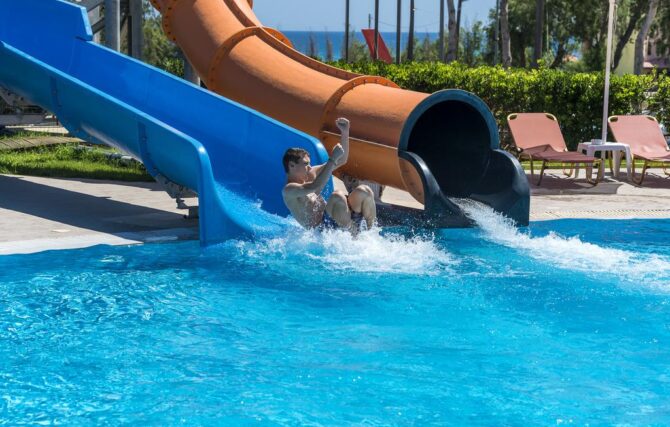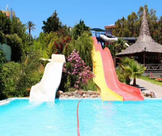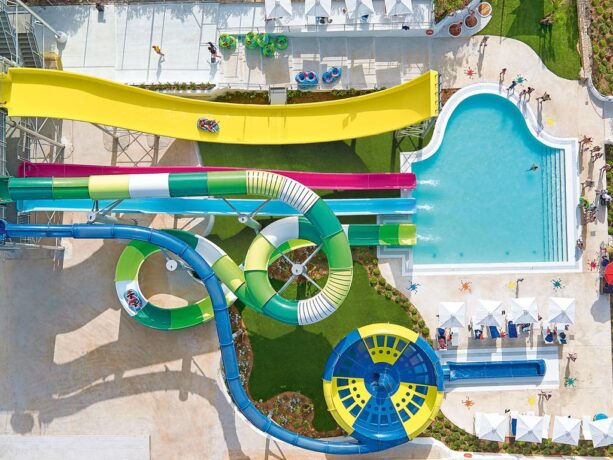 Главная «фишка» этого комплекса – шикарный аквапарк с экстремальными и небольшими водными горками, огромным количеством бассейнов, СПА-программами и головокружительными экстремальными аттракционами.