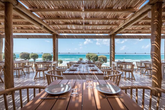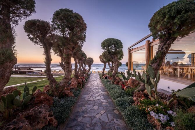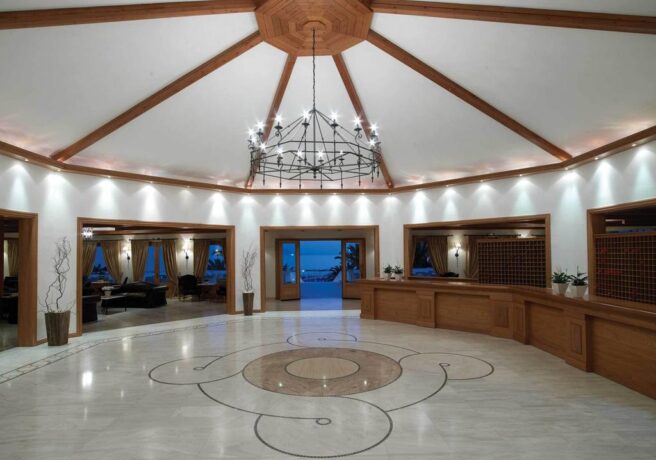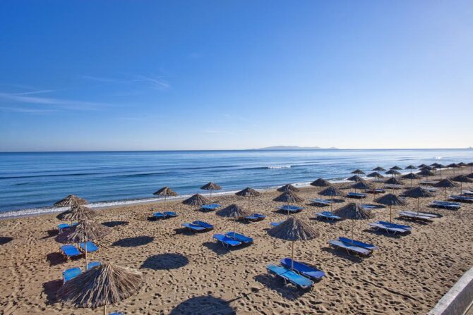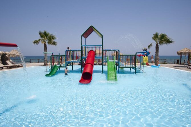Гостиница расположилась на побережье Критского моря – здесь можно не только поплавать и позагорать, но и научиться дайвингу. Предпочитаете купание в пресной воде? К вашим услугам несколько бассейнов, стилизованных под лагуны, с безопасными уголками и игрушками для малышей.