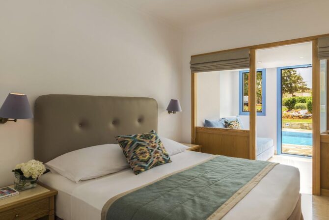 Mitsis Rinela Beach Resort & Spa | Ираклион | Стандарт Вилла Семейный Люкс | Кондиционер Сейф Звукоизоляция ТВ Детские кроватки | Аниматоры, детская площадка, дайвинг-развлечения, ежедневная игровая программа, Вечеринки Детское ТВ | По запросу/дети до 12 лет-от 20 евро в сутки | Нет |