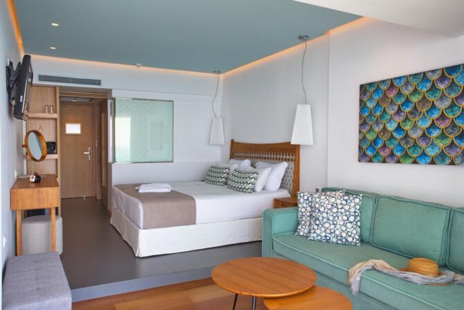 Fodele Beach Water Park Resort | Ираклион | Standard Luxe Делюкс Полулюкс | Рабочий стол Интернет Телевизор Мебель для детей Кофемашина | Экскурсионные программы, дайвинг, площадка для детских забав, водный парк, вечеринки, паззлы. | По запросу | Нет |