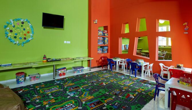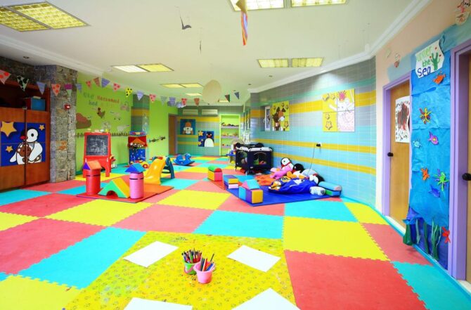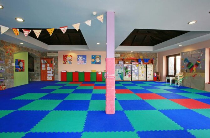 В гостиничном комплексе есть место для игр на свежем воздухе, бассейн открытого типа, теннисный и гольф-клуб. Чтобы родители могли полноценно отдохнуть, днем за детский досуг отвечают аниматоры.