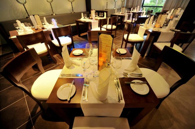 Попробовать изысканные рецепты разных кухонь мира можно на территории отеля: угощения выбираются как по меню, так и по системе буфета.