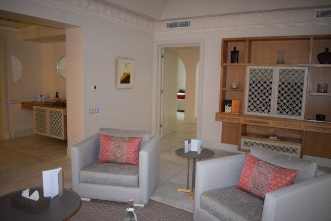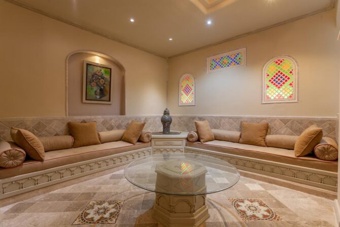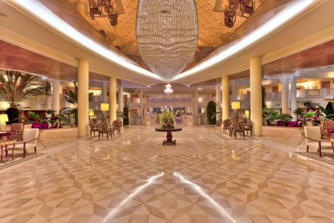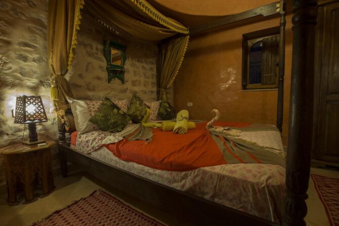 Номера «Люкс», оформленные в традиционном арабском стиле, предлагают комфортное размещение на огромных двуспальных кроватях. Для малышей бесплатно устанавливаются дополнительные спальные места.