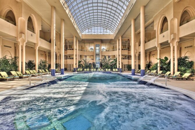 Купаться и загорать в Тунисе можно с апреля до конца октября. Если ваш отпуск выпадает на зиму-начало весны, не расстраивайтесь: в Hasdrubal Prestige Djerba имеется закрытый бассейн с подогревом, который работает в течение всего года.