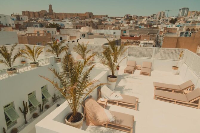 Уютный отель расположился в нескольких минутах ходьбы от интересных достопримечательностей Туниса. Любители экскурсии могут самостоятельно посмотреть музеи, уникальные дворцы, храмы, посетить традиционный восточный базар, где можно приобрести все – от памятных сувениров до одежды и ювелирных украшений.
