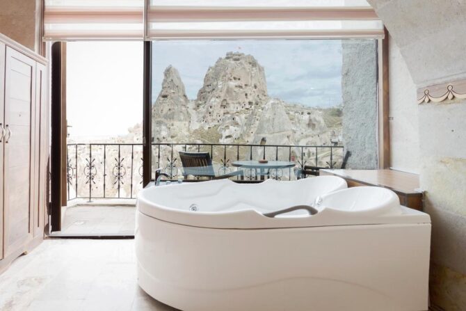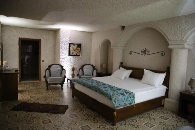 hermes-cave-hotel (Лучшие отели Турции для детей)В номерах имеется спутниковое телевидение с детскими каналами, зона отдыха, современная бытовая техника, необходимая посуда. Из окон открывается завораживающий вид на горные вершины.