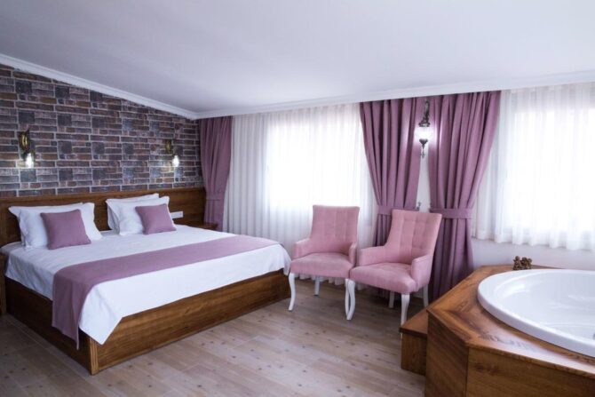 Бутик-отель в центре города Фетхие – прекрасное место для отдыха с детьми любого возраста. Обширный номерной фонд позволяет каждому туристу выбрать достойный вариант с учетом запросов и уровня бюджета, а малышей до 7 лет заселяют бесплатно. Обратите внимание: дополнительные кровати гостям не предоставляются.