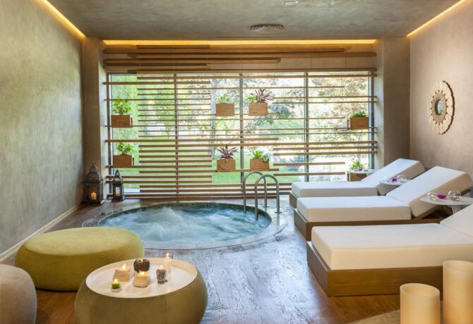Собственного пляжа у гостиницы нет, зато имеется несколько бассейнов закрытого и открытого типа, а также несколько купален с термальной водой, турецкие бани, гидромассажные ванны. Пока вы наслаждаетесь релаксацией и занимаетесь собой, ваши дети весело проводят время в игровой зоне под присмотром аниматоров. В вечернее время есть возможность пригласить няню для малышей – эта услуга не входит в стоимость проживания. Ребята старше 8 лет тоже могут посетить СПА-зону в сопровождении родителей.
