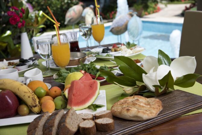 В отеле предусмотрены только завтраки по типу «Шведского стола». В остальное время можно питаться в кафе и ресторанчиках Фетхие, которые порадуют ассортиментом блюд и демократичными ценами.