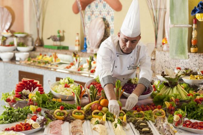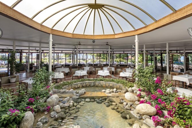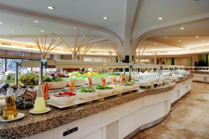 В гостиничном комплексе 6 ресторанов, три из которых обслуживают по системе «шведский стол». Ассортимент удовлетворит любые запросы: изысканные турецкие и европейские блюда, морепродукты, множество фруктов, местных сладостей и легких закусок. А для малышей есть отдельное меню.