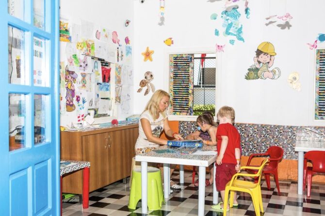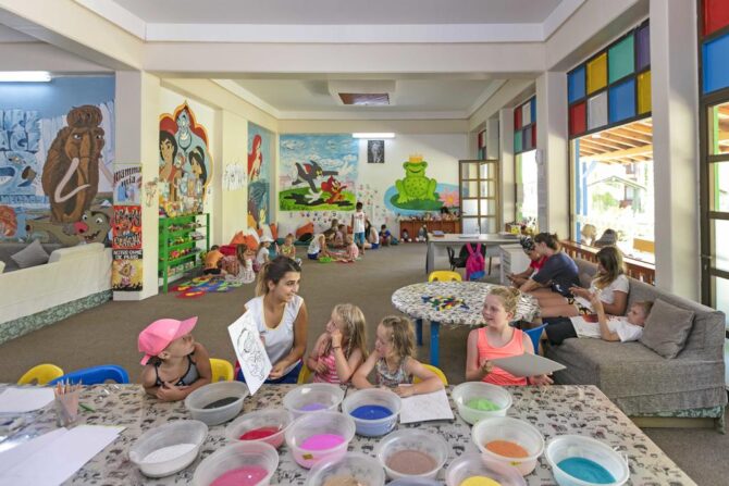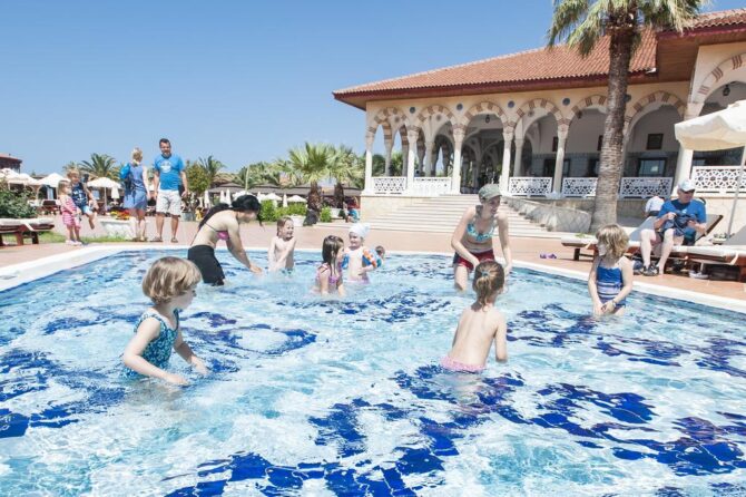 Маленьким туристам здесь найдутся занятия по душе: посещение аквапарка, увлекательные занятия в игровых комнатах и детском клубе. Развлекательные программы чередуются с познавательными мероприятиями, такими как кулинарные мастер-классы, обучение иностранным языкам в формате игры, изготовление оригами. По вечерам для взрослых и детей организуют дискотеки. Желаете отдохнуть «взрослой» компанией? За отдельную плату можно пригласить няню.