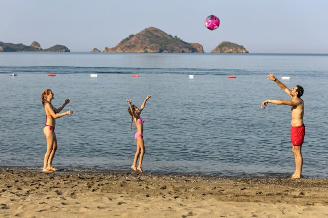Отдыхая в этом клубном отеле с детьми, в первую очередь стоит посетить аквапарк, где предусмотрена масса развлечений как для совсем маленьких, так и для подростков. Купаться можно на благоустроенном песчаном пляже или в просторном открытом бассейне, где гостям бесплатно предоставляются зонтики и шезлонги.