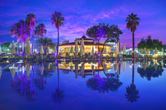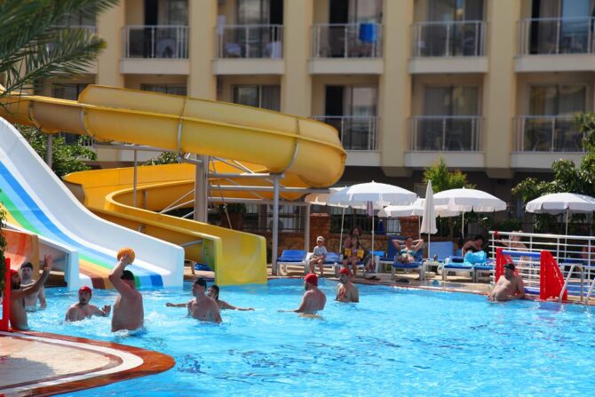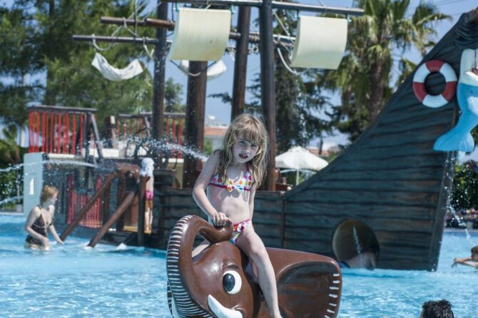 Отель на побережье Средиземного моря приятно удивит развитой инфраструктурой. Для детей здесь предусмотрен огромный выбор развлечений: аквапарк, бассейн с водными горками, открытая игровая площадка, тематический клуб, качественная анимация. За отдельную плату доступны услуги няни.