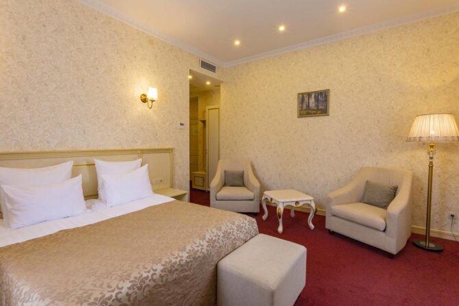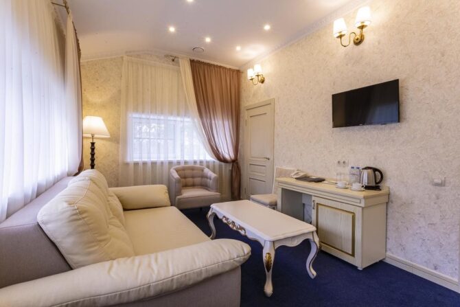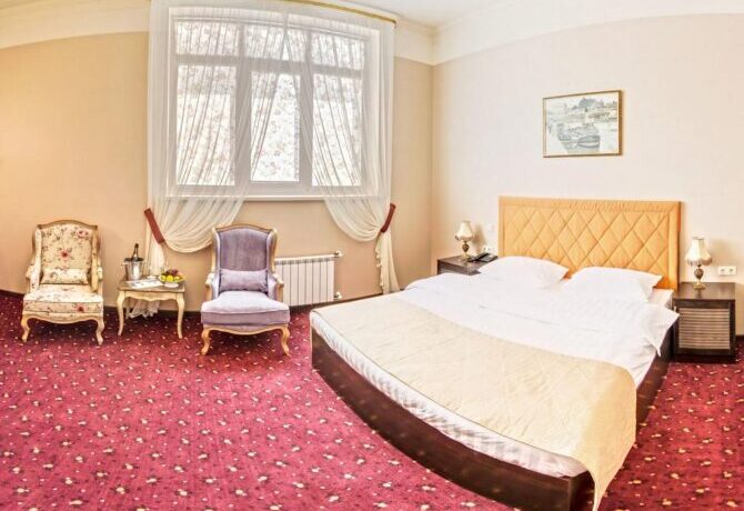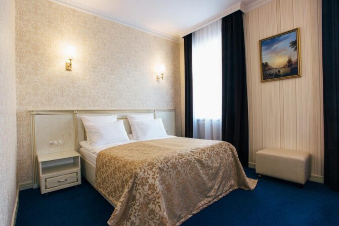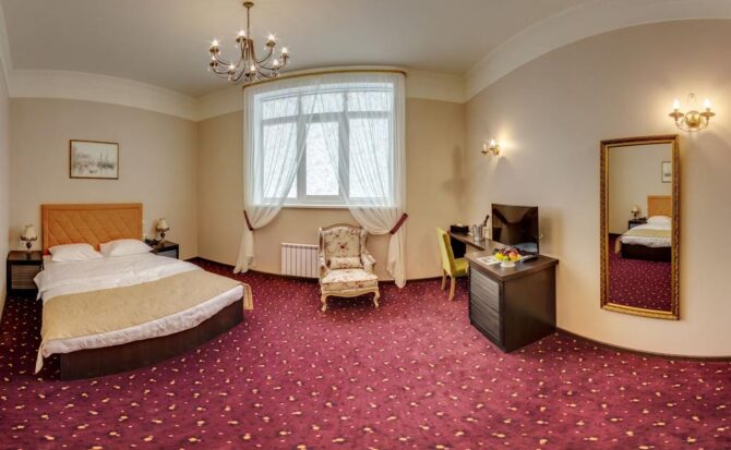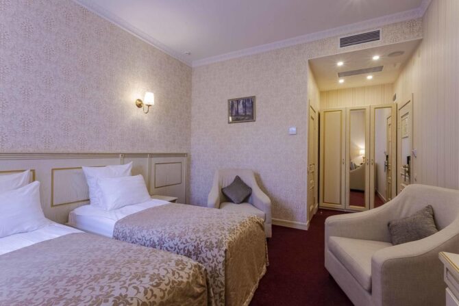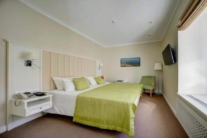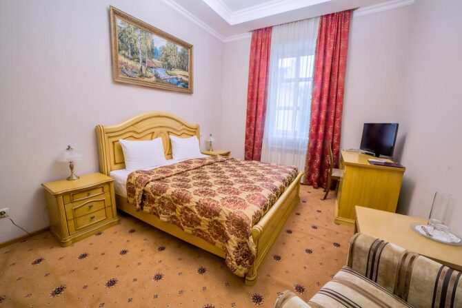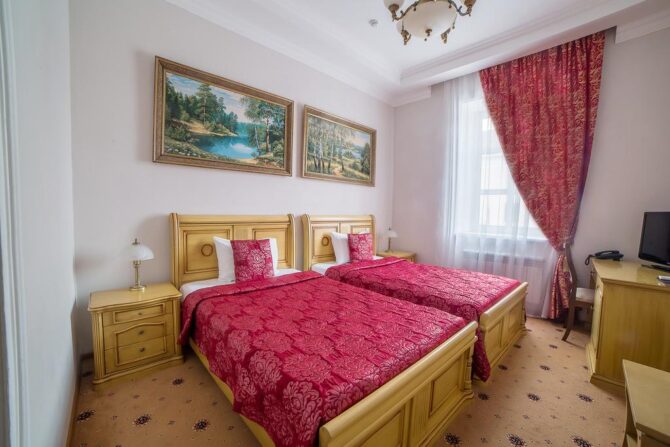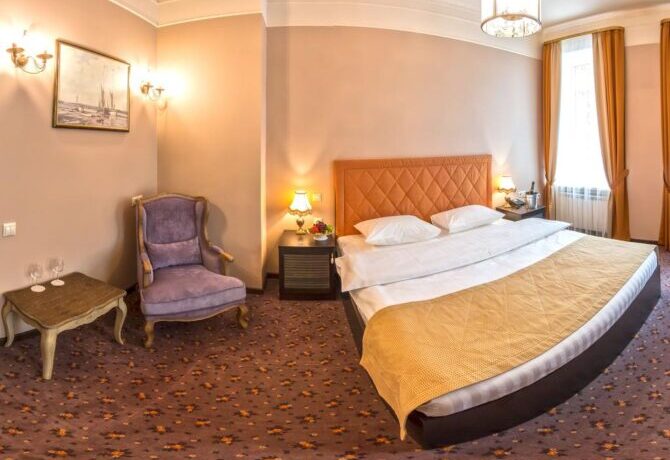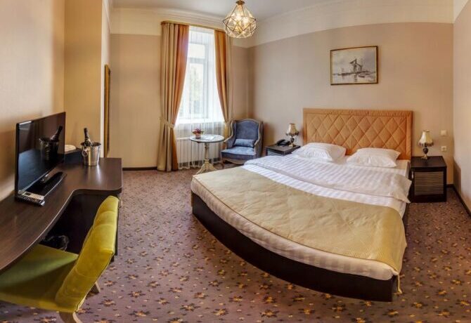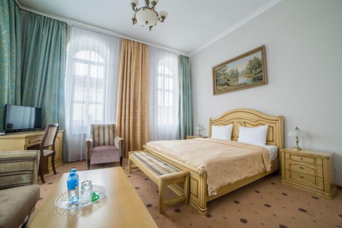 Губернаторъ | Центр | Стандарт Полулюкс Улучшенный Deluxe Luxe | Гостиная Гидромассажный душ Звукоизоляция Free Wi-Fi | Прогулки по городу с экскурсоводом Автобусные туры Художественные экспозиции Караоке-бар | От 45 € в день/ до 6 лет бесплатно | Нет |