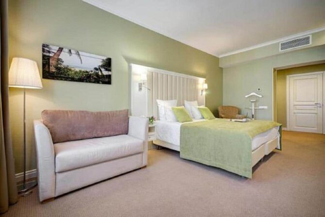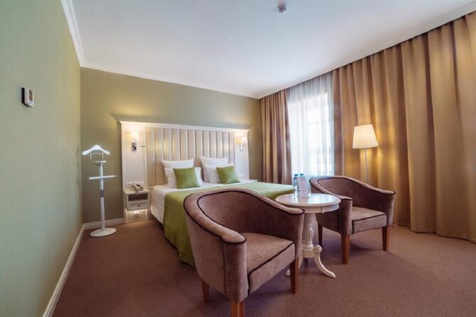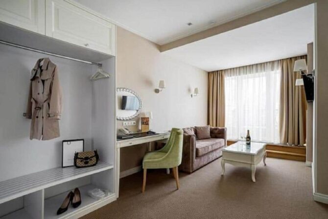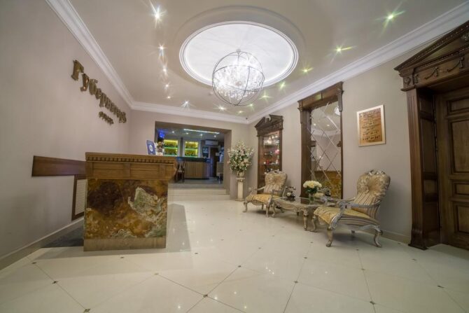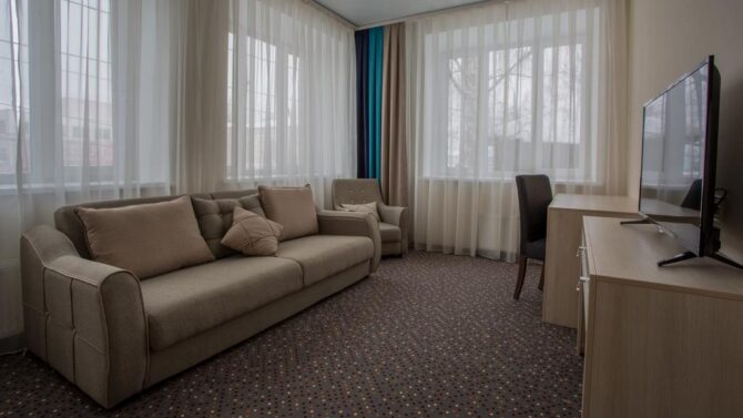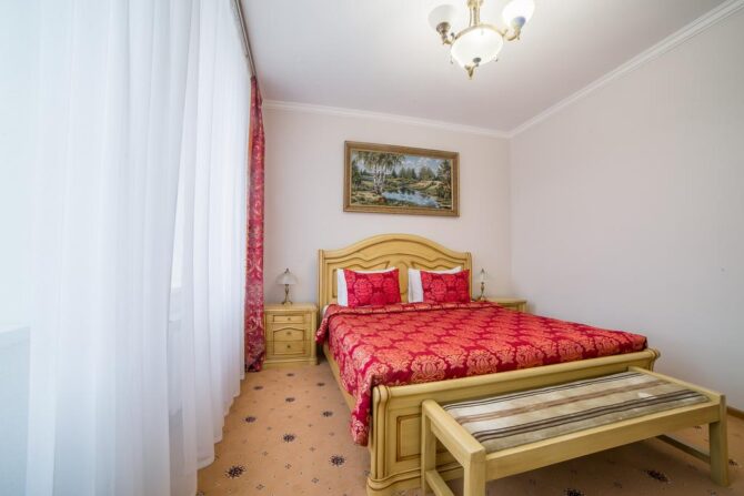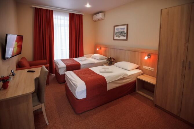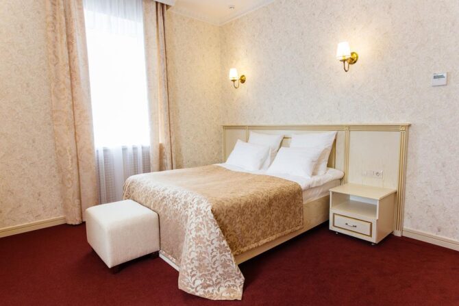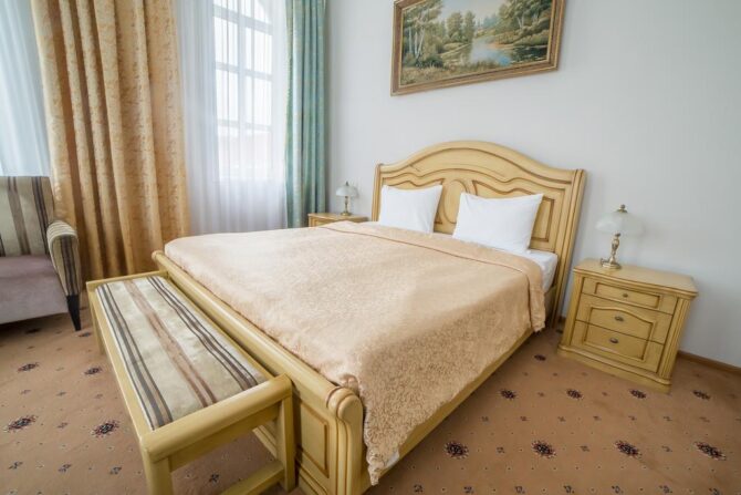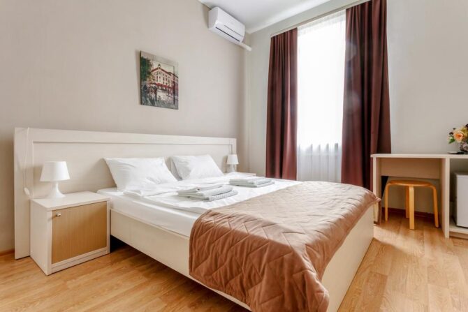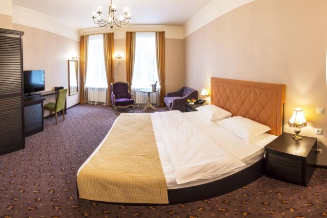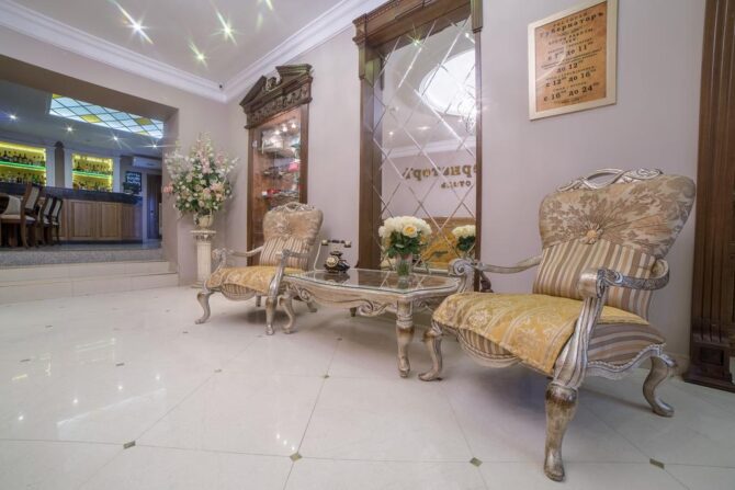 Губернаторъ | Центр | Стандарт Полулюкс Улучшенный Deluxe Luxe | Гостиная Гидромассажный душ Звукоизоляция Free Wi-Fi | Прогулки по городу с экскурсоводом Автобусные туры Художественные экспозиции Караоке-бар | От 45 € в день/ до 6 лет бесплатно | Нет |
