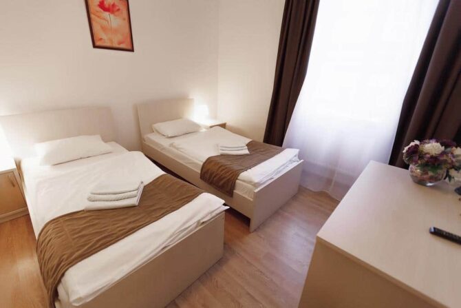 Постояльцев этого отельного комплекса привлекает расположение – до магазинов, ТЦ, культурных и исторических достопримечательностей можно добраться самостоятельно в считанные минуты. Ресепшен работает круглосуточно, поэтому вам не придется долго ждать заселения или помощи в трудных ситуациях. Боитесь опоздать на поезд или самолет? Рекомендуем заказать трансфер.