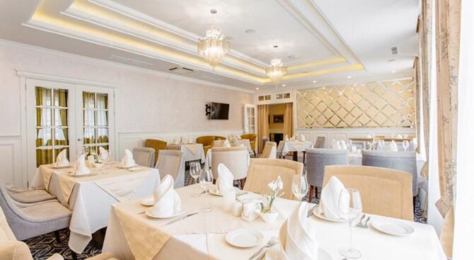 Систему питания клиенты выбирают сами – только завтраки, полупансион или обслуживание по меню. Заведение располагает собственным ресторанчиком, где подают изыски русской и европейской кухонь.