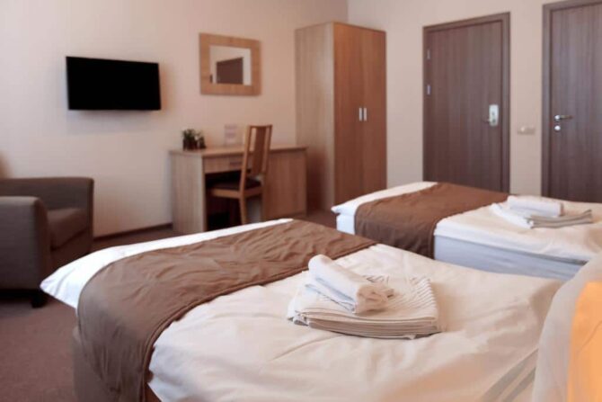 Андрей, Гомель: «Заметно, что отель построен недавно: все новое, техника в безупречном состоянии. Приятно удивили большие удобные кровати – я отлично выспался. Сотрудницы – приветливые и отзывчивые, готовы оперативно разрешить любые проблемы.»
