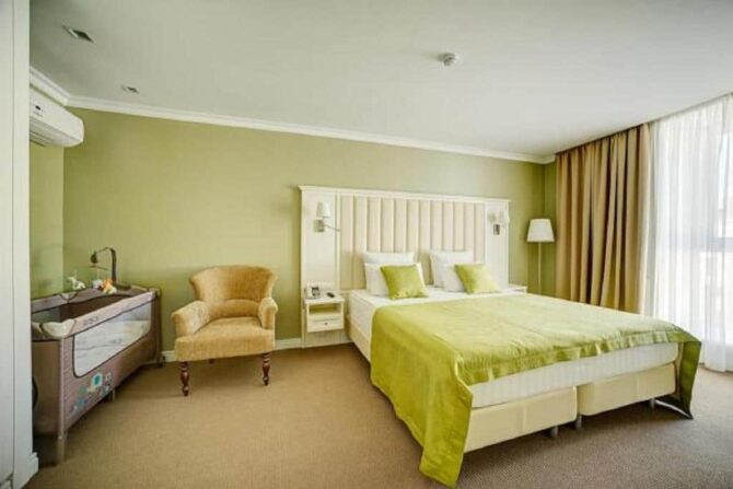 «Вишневый Сад» | 12 минут от аэропорта | Стандартный Улучшенный Комфорт | Электронный сейф Рабочий уголок Гардеробная Стирка одежды | Экскурсионные туры | От 35 евро в сутки/до 2 лет – 6 евро за ночь | Нет |