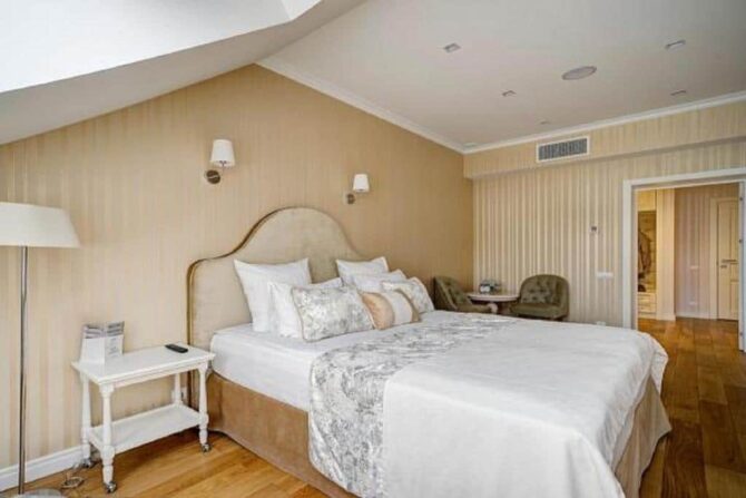 Звезда | Центр | Standard Полулюкс Люкс Business Семейный Superluxe | Гостиная Шумоизоляция Чистка одежды Прачечная | Пешие экскурсии в сопровождении гида Продажа билетов на концерты Сауна, баня СПА-клуб Услуги массажиста | От 30 евро за ночь/до 3 лет бесплатно | Допускается |