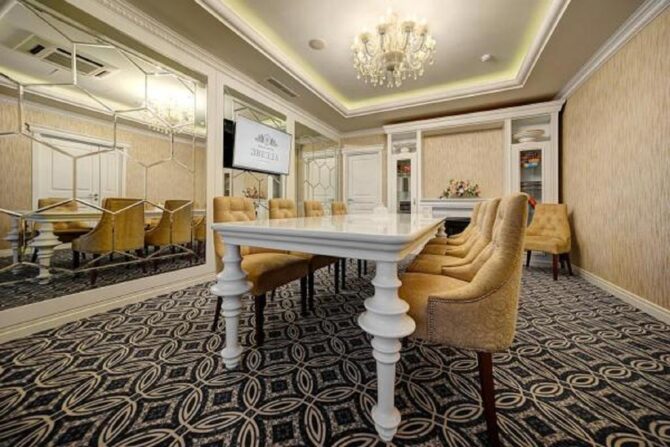 Для бизнесменов круглосуточно работает деловой центр, в конференц-залах, оснащенных современной техникой, проводятся мероприятия любого формата. А провести свадьбу, день рождения, корпоратив, можно в уютном банкетном зале.