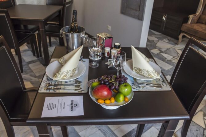 Завтраки по принципу шведского стола порадуют широким выбором горячих блюд и легких закусок, подходящих даже для маленьких детей. Если пожелаете, еду доставят прямо в апартаменты.
