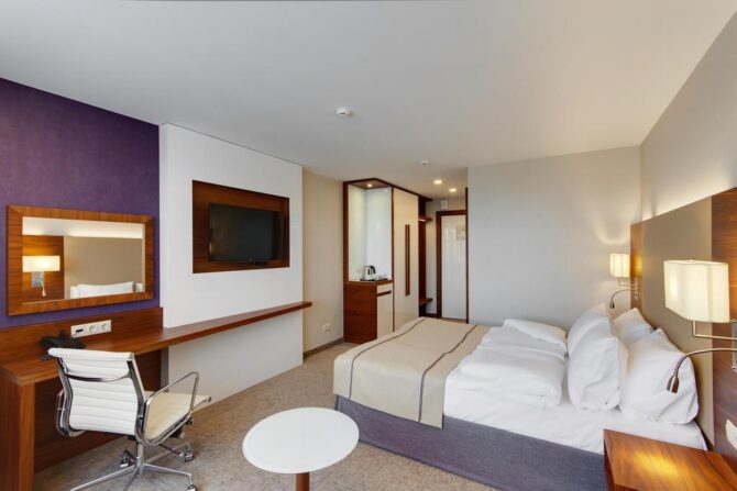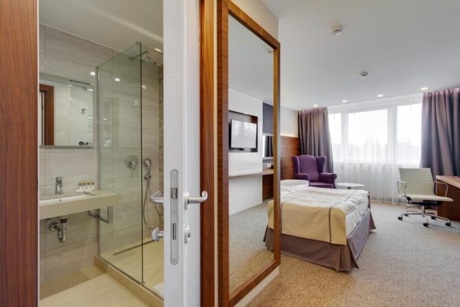 Cronwell Park | 1,5 км от ж/д вокзала | Стандарт Полулюкс Studio Улучшенный Luxe | Вентиляция Фен Место для работы Беспроводной Internet Удобная Lounge-гостиная Джакузи | Массажный кабинет SPA-программы Баня Комнаты для детского досуга Анимационный персонал Подвижные игры на свежем воздухе Лыжи Караоке | От 80 евро за ночь/до 2 лет бесплатно | Нет |