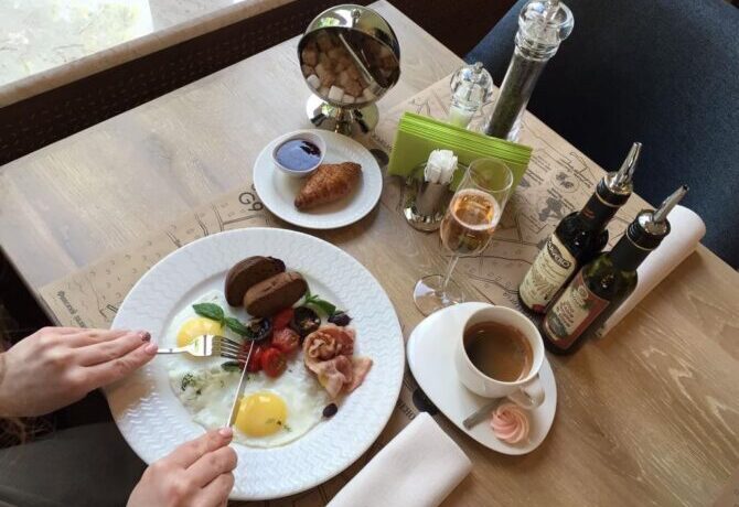 Кафе «Птички и ягоды» предлагает большой выбор легких и сытных завтраков, оригинальные изыски европейской кухни, проведение корпоративов и банкетов. Еда подходит даже для маленьких деток – в меню молочные каши, фруктовые и овощные салаты, свежеиспеченные блинчики со сладкими и мясными начинками.