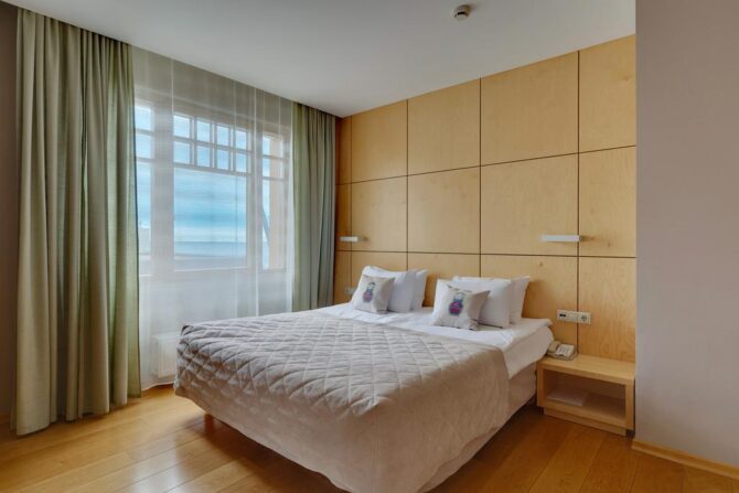 Терийоки | 75 км от аэропорта | Standard Комфорт Полулюкс Luxe Коттедж | Рабочий уголок Доступ к Wi-Fi Спутниковое ТВ Гардеробная Детская мебель Кофемашина Доп. кровати | Бассейн с морской водой Частный пляж Катание на лыжах Wellness/SPA Велопрогулки с гидом Дискотеки Аниматоры Концерты Игровые комнаты | От 80 евро за ночь/до 2 лет бесплатно | Нет |