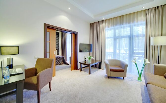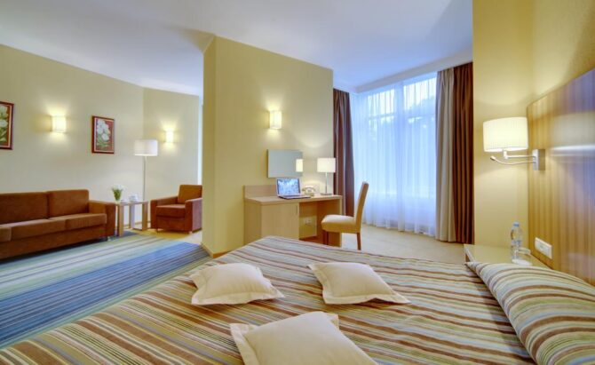 Гостиница в окружении соснового парка – хорошее решение для семейного досуга. Вы получите незабываемое удовольствие от SPA-процедур, а за вашими детьми в это время присмотрят сотрудники игровой комнаты. Оздоровительный центр предлагает индивидуальные программы, которые практически сразу дают заметный эффект.