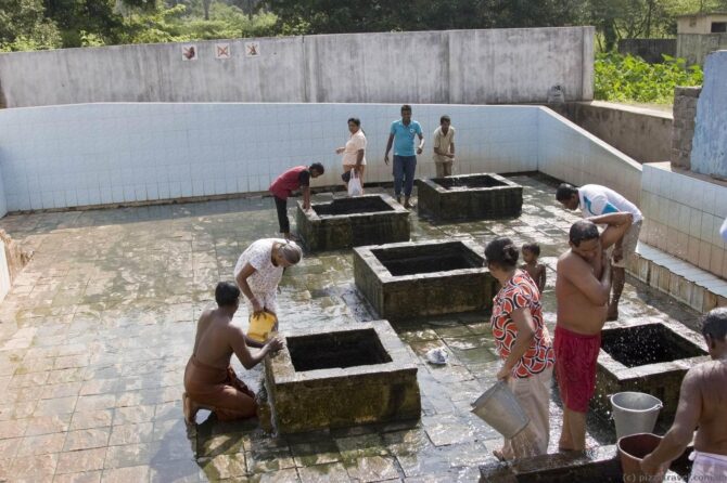 Плата за вход на источники символическая – 50 рупий с иностранцев и 10 рупий с местного населения. Купаться в колодцах нельзя. Посетители зачерпывают воду с помощью ведерка, а затем обливают себя с головы до ног. Приезжать сюда лучше с рассветом, народа в это время практически нет. Днем людей много, ведерок свободных может не оказаться. Придется ждать. Пользоваться мылом ни в коем случае нельзя. Есть отдельные раздевалки для мужчин и для женщин. У входа на территорию комплекса работают лавки с продуктами питания и одеждой.