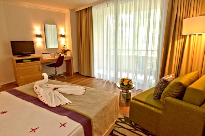 В Туи Магик Лайф Белек вас ждет 368 подготовленных комфортабельных номеров, где кроме ванны и душа вы найдете фен, бесплатный мини-бар с прохладительными и алкогольными напитками, электронный сейф для хранения ценных вещей. Также вам регулярно будут пополнять набор душевых принадлежностей. В свободное время вы можете посмотреть телевизор. Для быстрой связи с персоналом установлен телефон. На балконе есть сушилка для одежды. В вип-апартаментах есть джакузи.