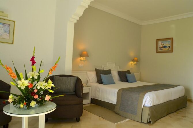 В здании пансиона размещено 392 номера разных классов. С открытых балконов спален открывается красивый вид на сад, гольф, пул или море. В каждой комнате есть холодильник, телефон, телевизор и фен. Везде ловит бесплатный скоростной Wi-Fi. Питание здесь предоставляется в 4 ресторанах. Основной сервируют по типу шведского стола. Помимо него есть заведения, предлагающие тунисскую, средиземноморскую и итальянскую кухню. Есть несколько баров, где можно послушать живую музыку, покурить кальян, насладиться прохладительными напитками. Для активного отдыха есть множество спортивных площадок, а, также вы можете заняться здесь верховой ездой.